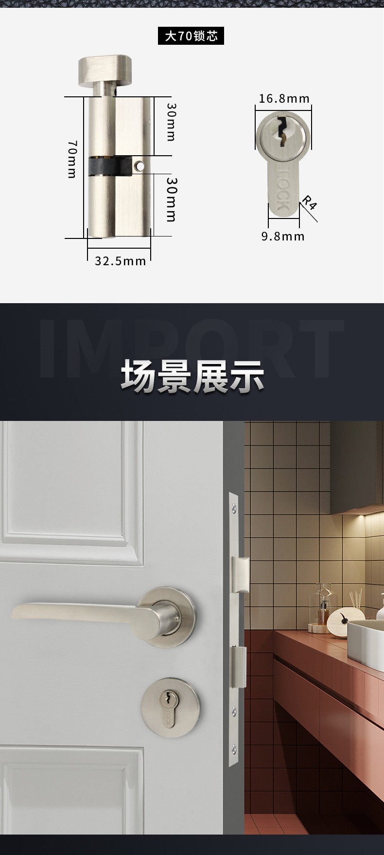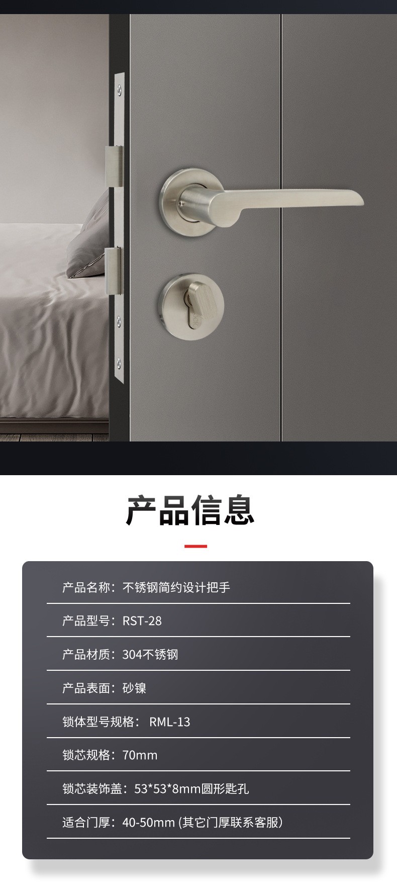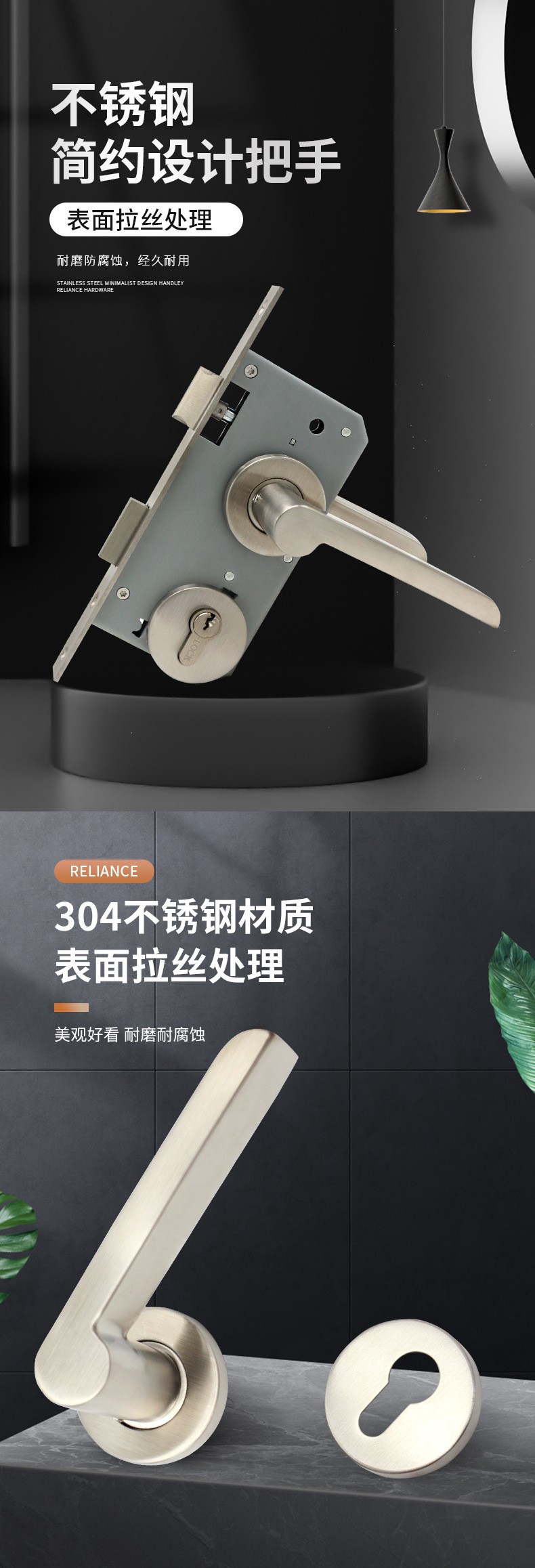 RST-28 不锈钢304简约镍拉丝分体锁