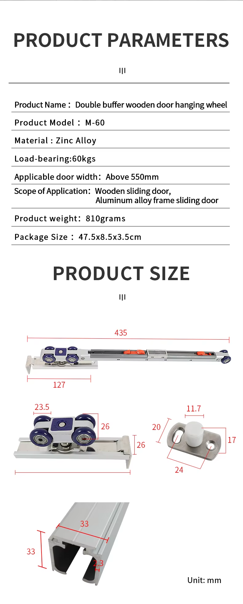 M60 Sliding Door System Track Nylon Silent Hanging Wheel
